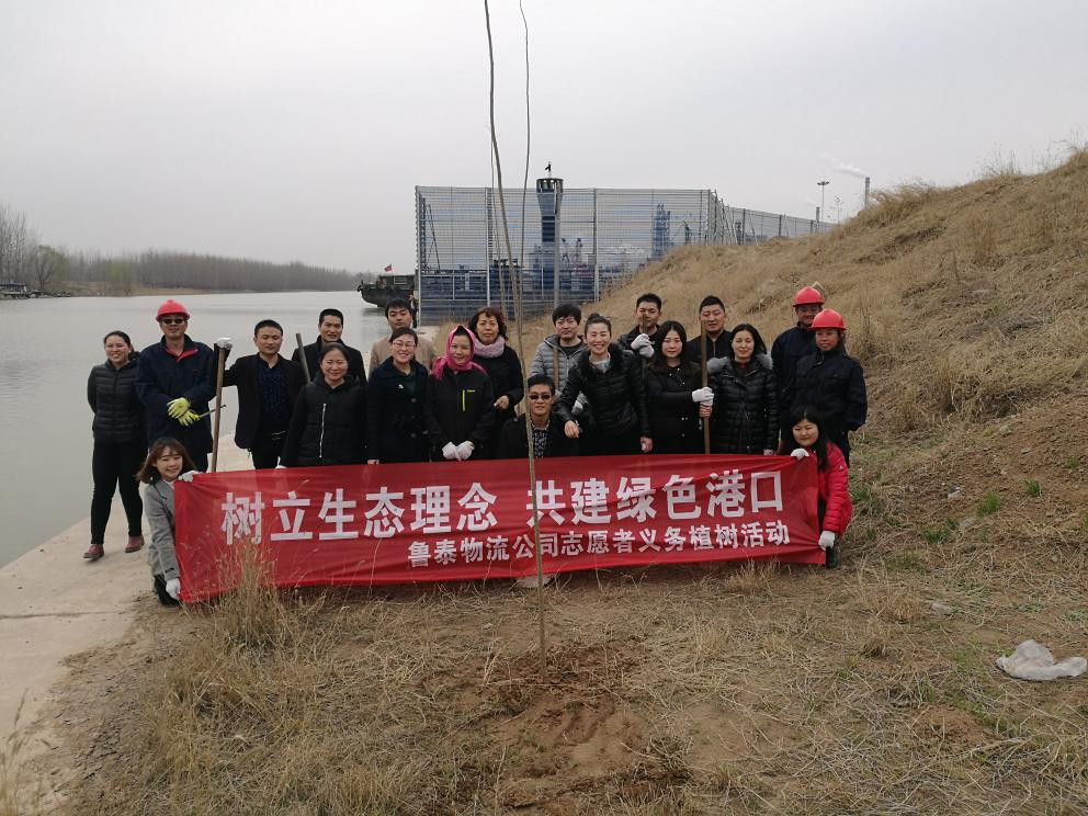 3月13日下午,为激发职工爱林、造林的感情,提高人们对森林功用的认识,促进物流港绿化,改善物流港生态环境的目的。鲁泰物流公司组织志愿者开展"树立生态理念 共建绿色港口"义务植树活动。
