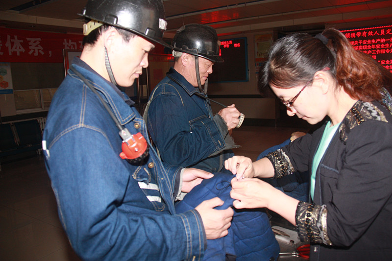近日,太平煤矿工会女工协管安全委员会精心组织各协管分会女工协管员轮流到副井上井口等候室为上下井职工钉纽扣、补工装,为矿井安全生产形势持续稳定做出积极贡献,深受职工群众普遍好评。