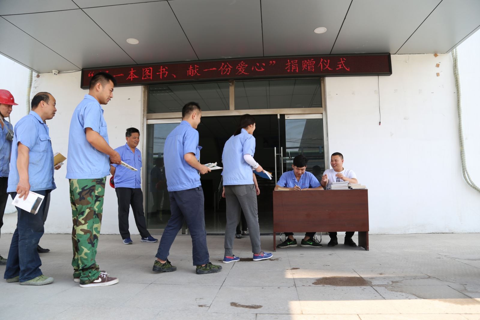 为响应集团公司 "捐一本图书献一份爱心"图书捐赠活动号召,帮助驻外企业建设职工书屋,弘扬互帮互助良好风尚, 6月7日下午,金威水泥在举行了"捐一本图书 献一份爱心"捐书仪式。