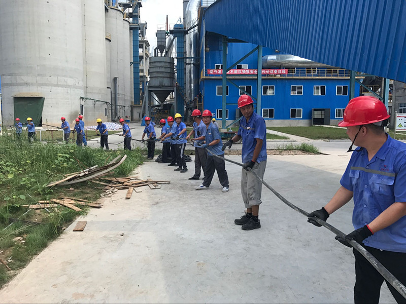 8月11日上午8点30分,金威水泥公司利用检修期间组织各车间、部室员工共计50余人进行厂区电缆敷设工作。