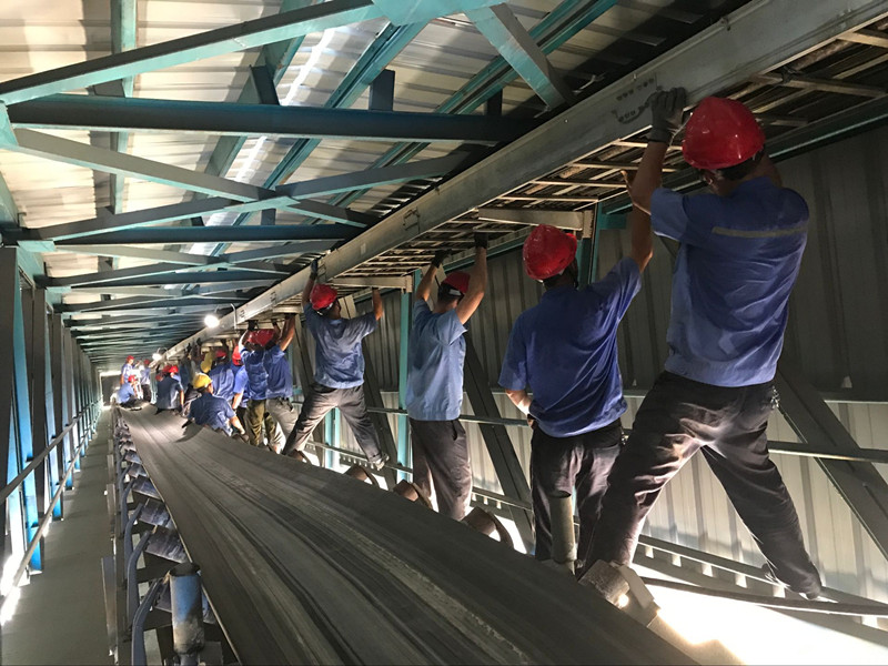 从水泥公司烘干配电室起,敷设至烘干厂房。途中需穿过电石渣皮带廊,只能一只手将电缆缓缓向前移动。大家在酷热的天气里,喊着口号"一、二、三"一点一点向前移动,在劳动中,大家激情高昂,充分体现了金威水泥员工不怕苦不怕累的精神。