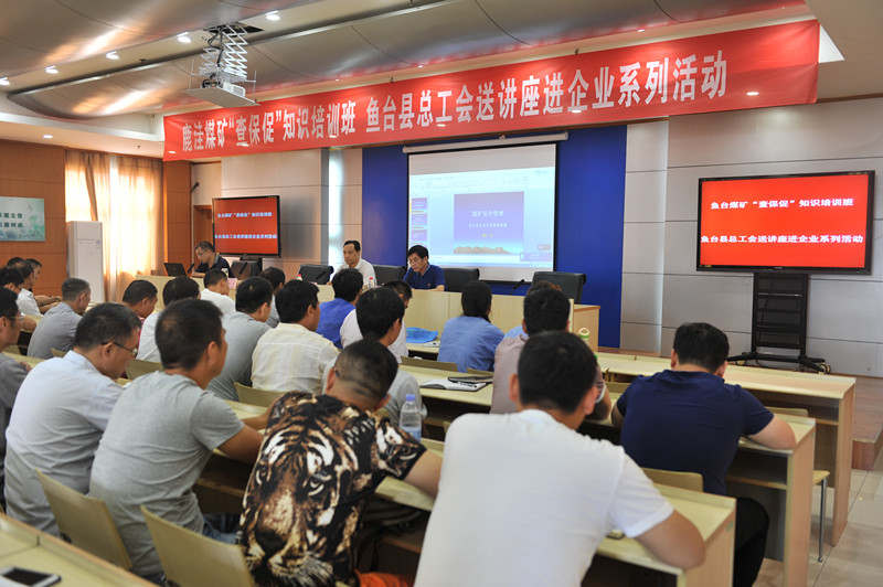 8月10日上午,鹿洼煤矿四楼多功能厅,鱼台县工会副主席张敬军和戴仁秀教授二人把安全教育讲课活动送到鹿洼煤矿。
