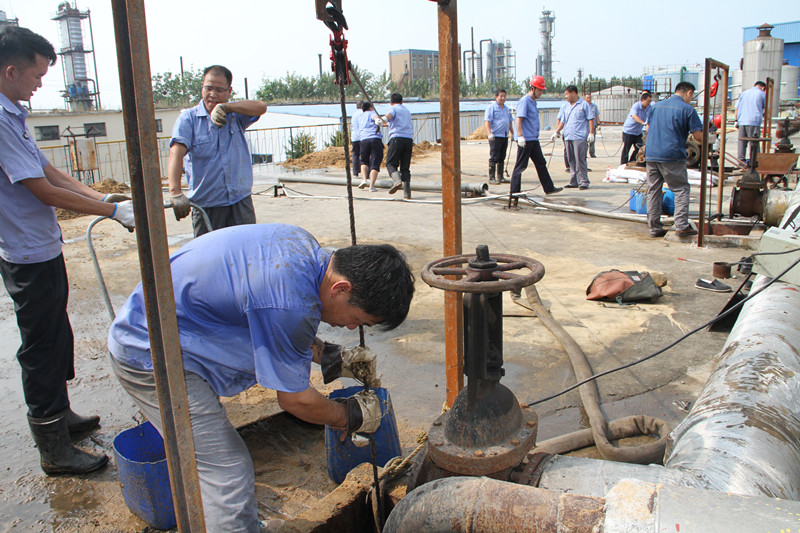 "好!可以了!往上走!一二......!"寻着铿锵有力的呐喊声映入眼帘的是一片热火朝天的景象。9月3日,利用机组检修期间,金威热电公司组织20余人上至公司领导、下至检修工,对高6米、面积2000方的原水箱进行淤泥的清理工作,清淤分成四组(原水井下一组)进行,清淤工作劳动强度大,同事们不怕脏不怕累,干劲十足!此次清淤工作在降本增效的同时,大大的提高了大家的凝聚力和向心力,弘扬了艰苦奋斗的企业精神。