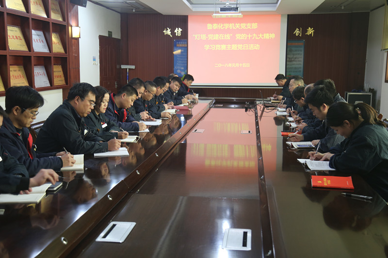 1月15日下午,鲁泰化学机关党支部在公司二楼会议室开展"灯塔-党建在线"党的十九大精神学习竞赛主题党日活动。公司班子成员以普通党员身份参加活动。