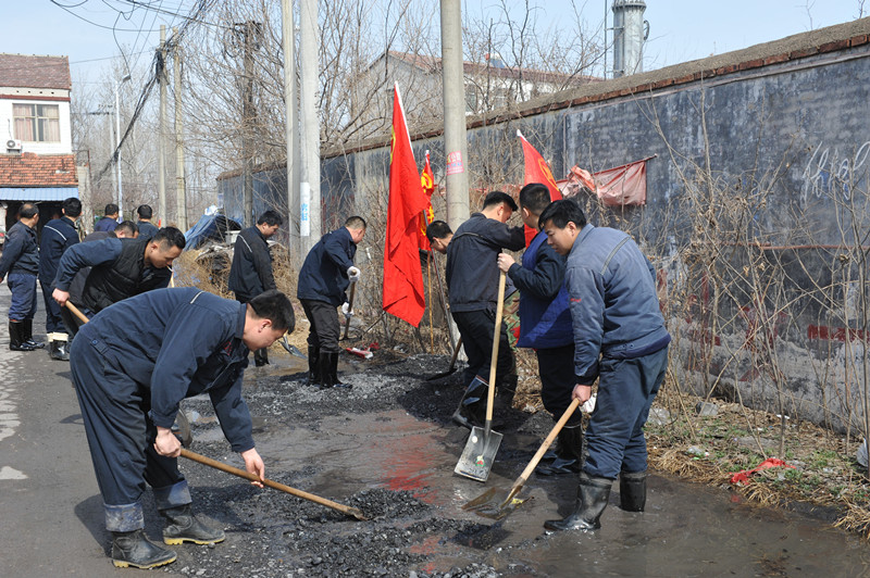 下午1时,志愿者们又自带劳动工具,在通往金威热电厂的公路上掀起一片劳动热潮。此路段因为长年没有维修养护,路面损坏严重,雨天车辆容易陷入坑洼地带,存在一定的隐患,志愿者们对此路段进行了碎矸石铺垫,平整了路面,保障了车辆及人员的出行 。