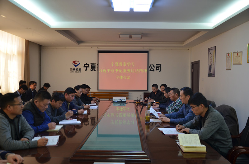 3月14日下午,宁夏鲁泰召开会议,传达学习习近平总书记在山东代表团审议时的重要讲话精神。宁夏鲁泰公司党政班子成员,各项目部、各部室党员干部30余人参加了会议。该公司总经理刘炳法主持会议,传达了相关文件精神和李合军总经理在集团视频会议上的讲话精神。