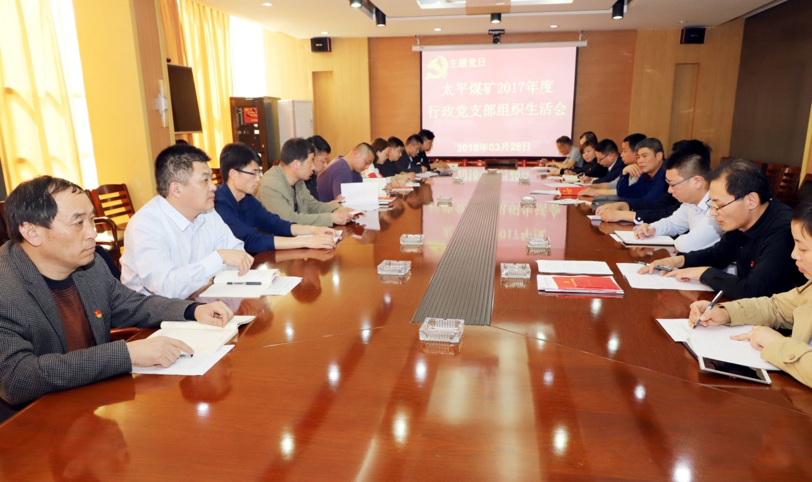 3月28日下午,太平煤矿行政党支部在办公楼三楼会议室召开了2017年度组织生活会。该矿党政负责人汤保民以普通党员身份参加会议。该矿行政党支部书记、矿长助理兼劳资教育科科长陈源主持会议。行政党支部全体党员参加会议,两名群众代表列席会议。政工科副科长刘晓霞到会进行监督指导。