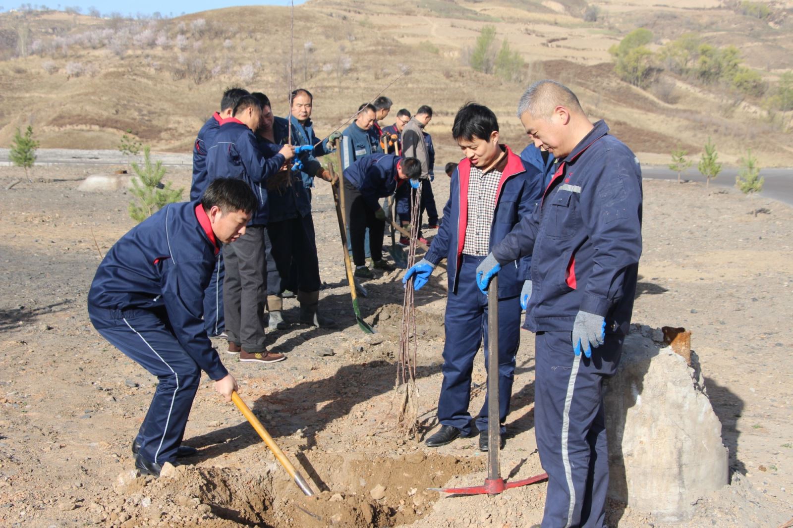 春回陕北万物苏,植树添绿正当时。为大力弘扬共产党人的"种树精神",树立和践行"绿水青山就是金山银山"的理念,4月1日,陕西鲁泰公司海则庙项目部党支部组织干部职工在海则庙煤矿矿区内公共绿地开展了义务植树活动。
