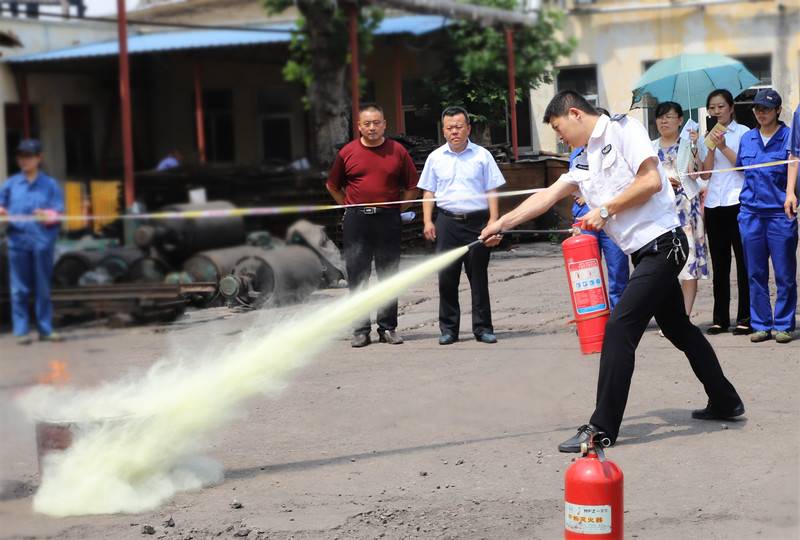 随后,康教官带领参训人员在机修厂进行了灭火实战演练。在教官的精心指导下,参训人员轮流用灭火器进行了扑灭火源的操作方法,在实践中更好地掌握了灭火器的使用方法和初期灭火的自救方法。