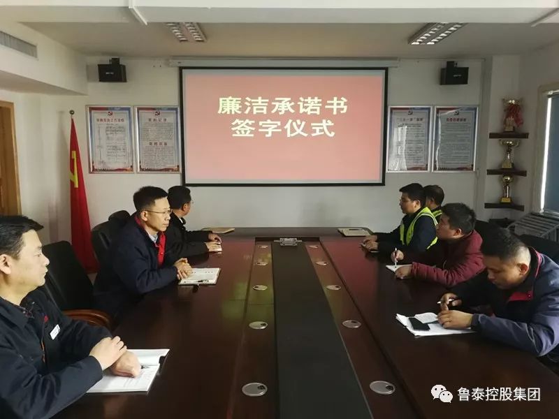 1月12日,鲁泰热电同重点项目施工单位和项目监理方签订《廉洁承诺书》,为热电公司工程项目的施工筑起“廉洁防火墙”,该公司总经理王允来、副总经理荆明光参加会议。