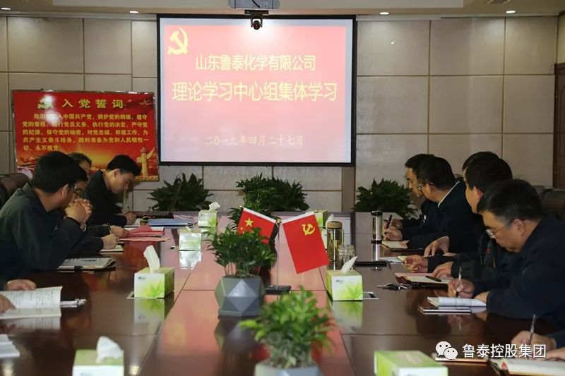 4月27日上午,鲁泰化学在办公楼三楼党员活动室开展理论中心组集体学习。党委书记、董事长张玉标主持会议并讲话,领导班子成员、总经理助理、政治工作部负责人及各党支部书记参加学习。