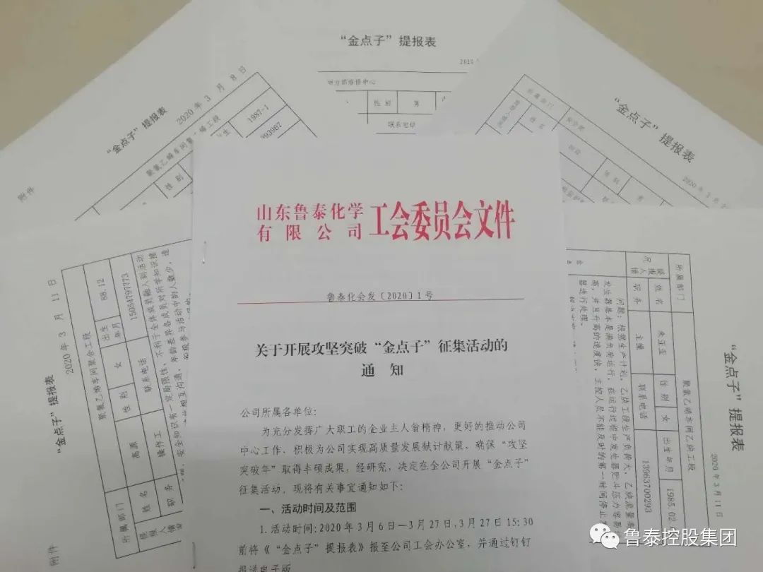 近期,鲁泰化学在全公司范围内开展了“金点子”征集活动。目前,活动共收到意见建议50余条,含盖安全生产、环保管理、经营管理、项目建设、科技创新、降本增效等各个环节,广大职工参与公司管理,助力公司实现高质量发展的积极性异常高涨。该公司将对收集到的意见建议进行评选,并对被评为“优秀金点子”的意见建议给予表彰奖励。