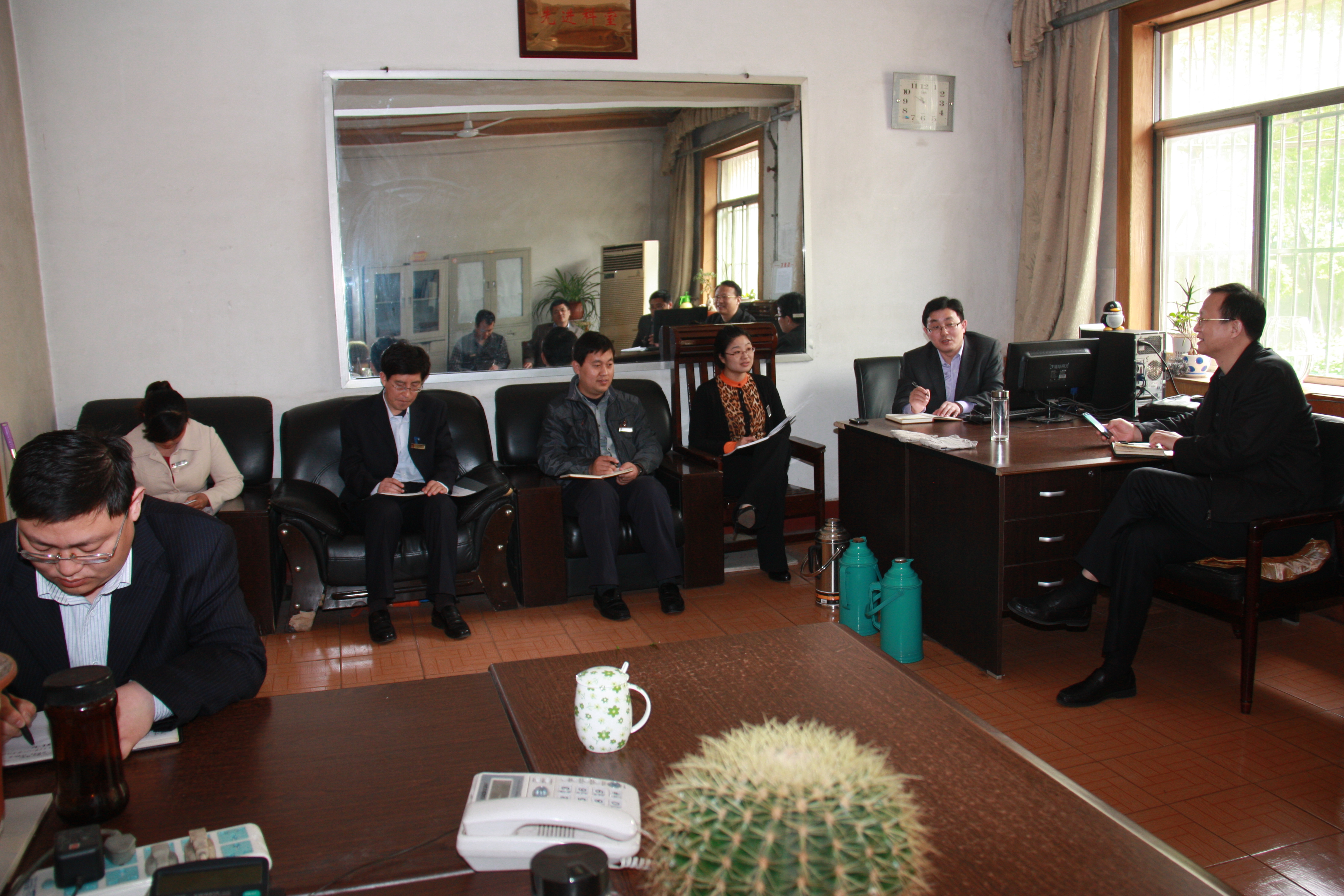 到矿后,李合军首先听取了太平煤矿党委书记汤保民关于该矿教育实践活动开展情况的专题汇报。李合军对太平煤矿教育实践活动开展情况以及取得的初步成效给予肯定。随后,听取了班子成员对鲁泰煤业公司领导班子和班子成员"四风"方面的意见建议。接着,李合军来到矿物业管理办公室,与矿财务科、安全科、生产技术科、仓库、销售科、企业管理科、供应科、机电科等科室负责人进行座谈,听取意见建议。最后,李合军来到矿副井等候室,与生产区队和职工代表进行座谈,对群众提出的意见给予解答。