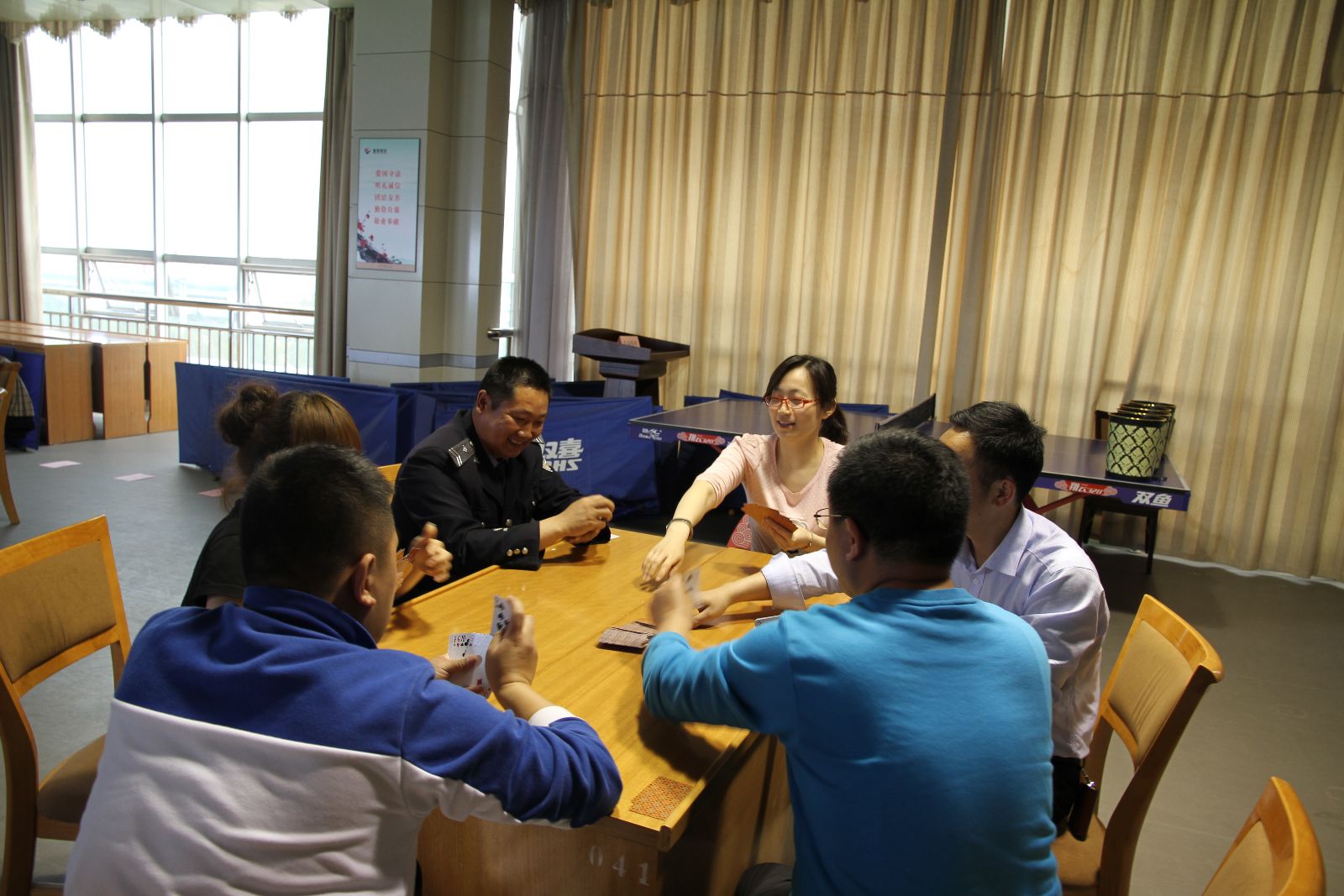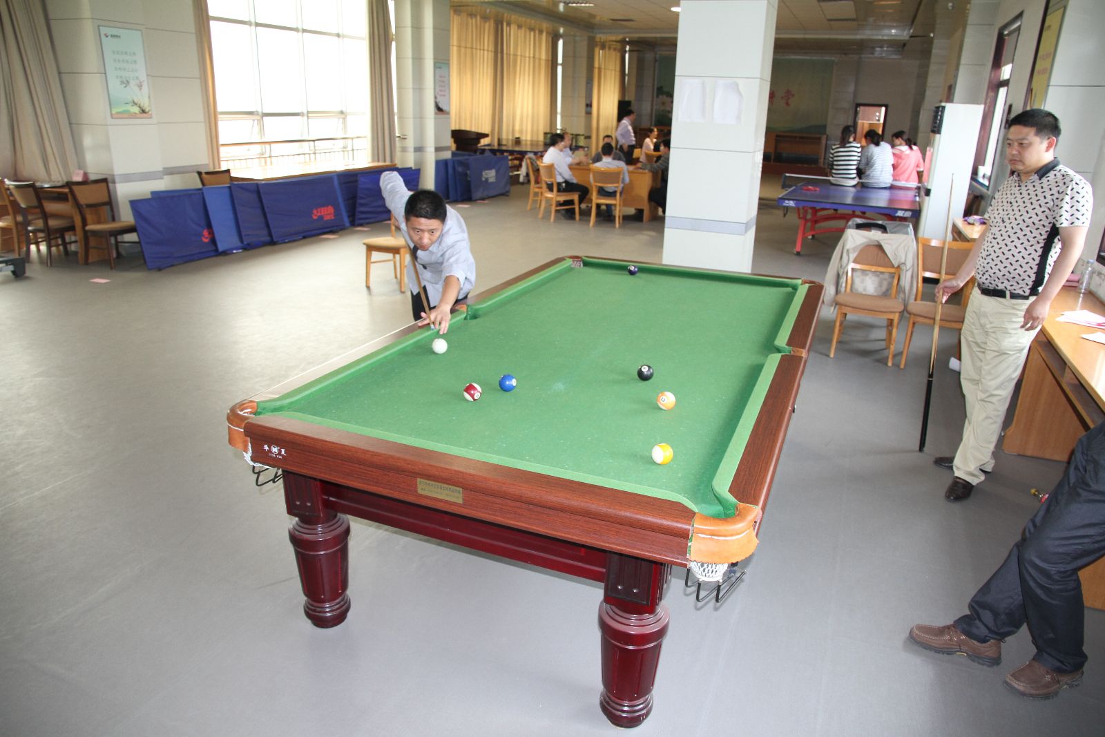 此次趣味运动会分为左手托乒乓球跑、双人绑腿跑、你抛我接、飞镖掷准、跳绳、单腿跳、够级、台球等8个比赛项目。