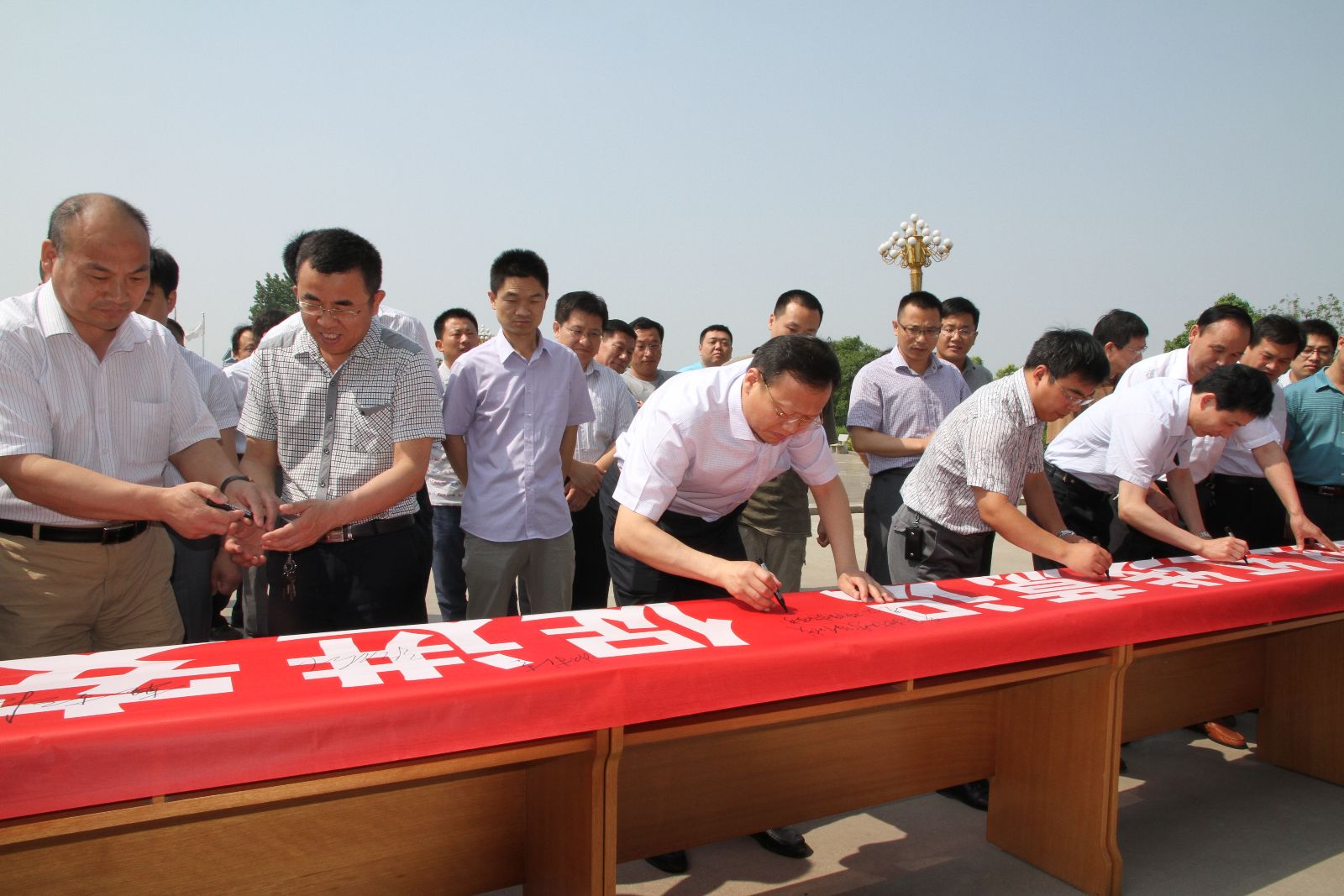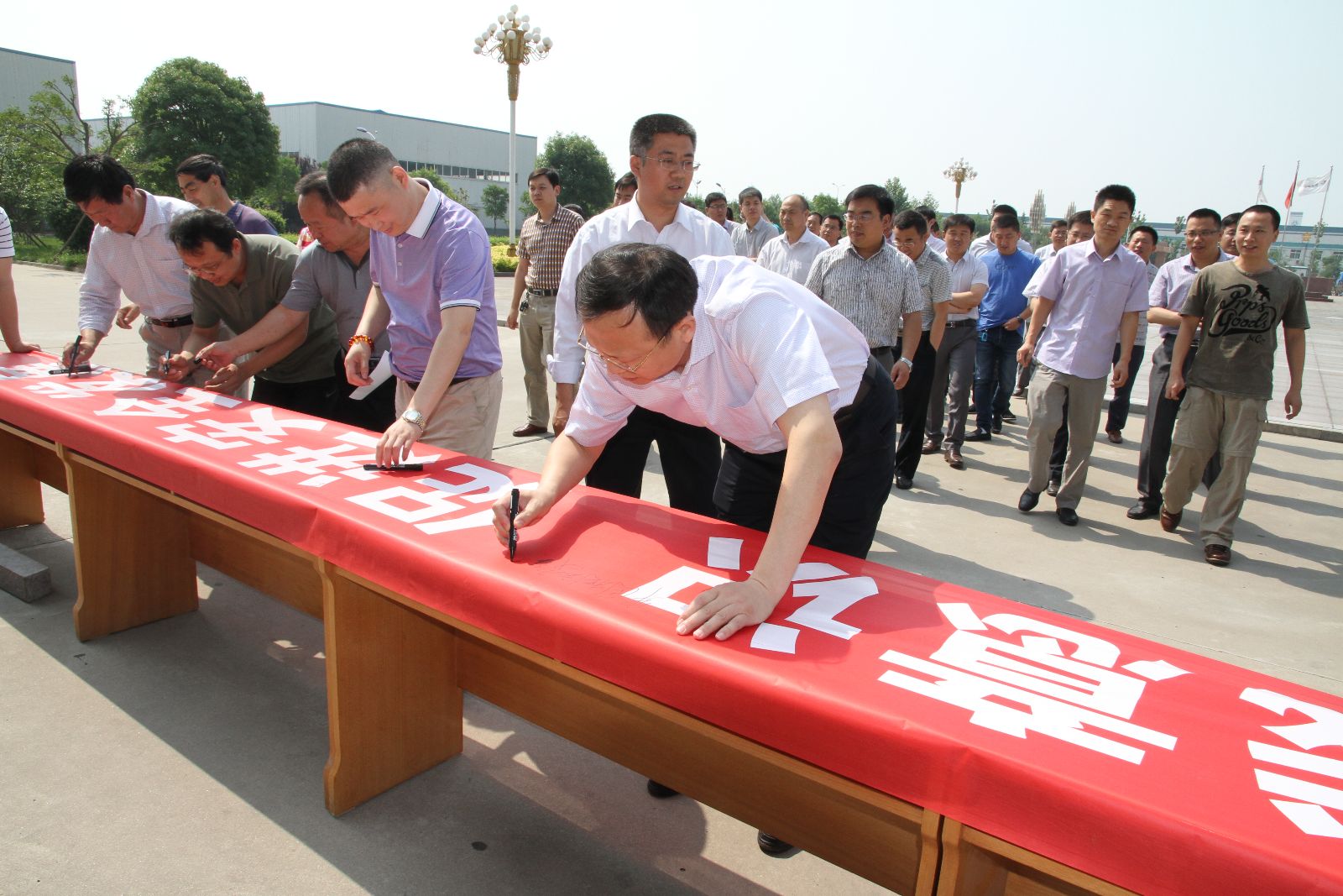 启动仪式上,关延忠副总经理带领参会人员进行了安全宣誓,参加人员举起右手,庄严宣誓:忠诚企业,牢记安全,强化红线,履行职责,做一名本质安全型员工。宣誓结束后,总经理李合军带领全体人员在安全生产月条幅上签名,牢固树立红线意识,确保安全生产。