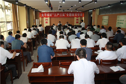 5月27日上午,太平煤矿在新办公楼六楼会议室举办了"三严三实"专题教育党课,标志着太平煤矿"三严三实"专题教育的正式启动。矿长张玉标主持党课,并对矿开展"三严三实"专题教育进行安排部署。党委书记汤保民以《自觉践行"三严三实"要求,为全面实现2015年工作目标而努力奋斗》为题,为党员干部上了一堂深刻生动的专题党课。