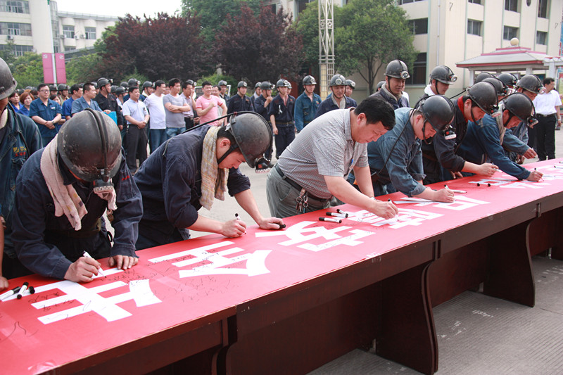 启动仪式上,安全副矿长刘增硕带领全体参会人员进行了安全宣誓,参会人员举起右手,握紧拳头,庄严宣誓,确保实现安全生产。在启动仪式的最后,全体参会人员在安全生产月条幅上签名,保证安全生产。