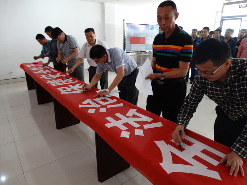 随后,陕能科技公司、百吉项目部共52人在"加强法治、保障安全生产"的安全月主题横幅前作出了全心全力保障安全生产的庄严宣誓,并在横幅上签名承诺,正式拉开了陕能科技公司"安全生产月"的序幕。