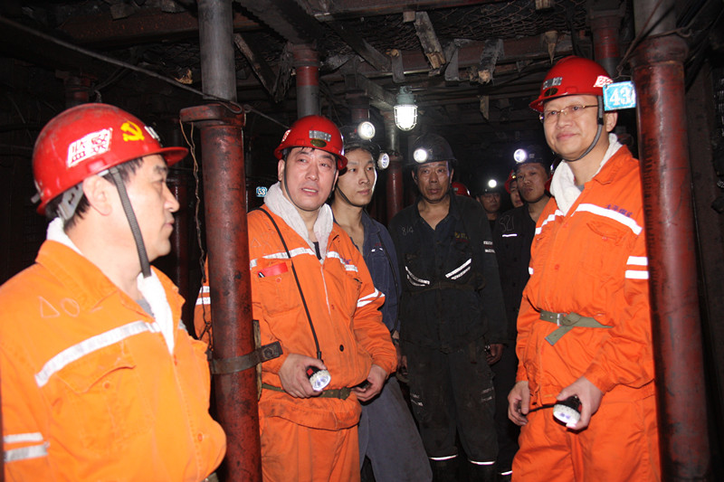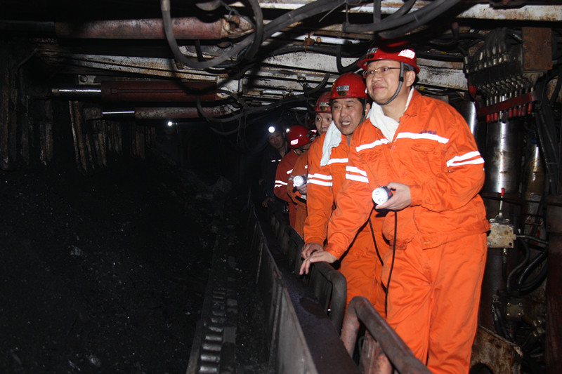 到矿后,李合军一行直奔井下6F301采煤工作面,现场查看采煤工作安全生产情况,并与采一工区区长、职工进行细致交流,详细询问了安全生产存在的问题、职工收入、职工思想状况等问题。在交流中,李合军介绍了集团公司当前面临的形势、集团发展愿景、下步发展规划。