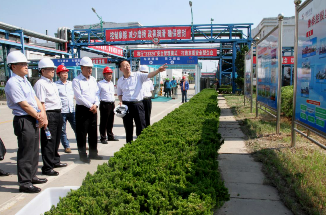 调研中,李合军详细汇报了集团内部市场化的做法和成效,集团"一体两翼、循环发展"战略、发展愿景和"十三五"规划情况,"德兴"文化体系建设情况。在内部市场化建设方面,1-4月份,鹿洼煤矿原煤完全成本同比减少97.73元,降幅27.31%;吨煤材料消耗同比减少8.88元,降幅28.30%;在发展循环经济方面,重大项目进展顺利,单县岩盐资源已完成预可研,预计6月初可拿到资源;金威热电扩能改造项目的环评基本完成,已进入项目立项阶段;水泥项目正按照施工进度积极推进;在发展愿景确定方面,提出了建设"绿色、创新、卓越、幸福"的新鲁泰,成为绿色发展的践行者、轻资产运营的示范者、新兴产业的引领者的发展愿景;在新兴产业发展方面,与济宁利特纳米公司签订了"石墨烯改性高分子材料项目"战略合作协议,与海尔集团上海乐赚公司签订了互联网金融全面战略合作协议;在leyu建设方面,集团在"传承齐鲁文化、弘扬泰山精神"的基础上,形成的"德兴"文化体系已经成为鲁泰控股集团基业常青的精神财富和不竭动力。
