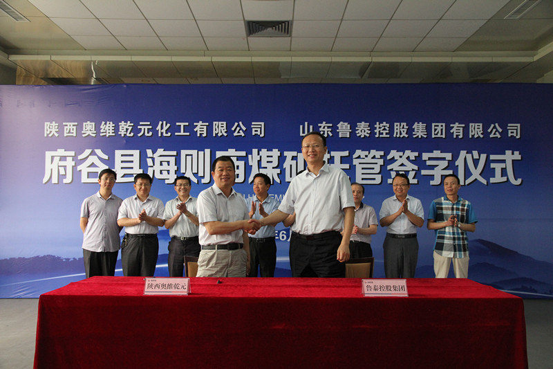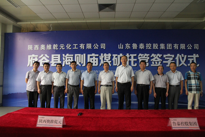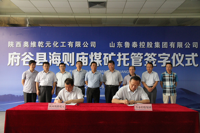 签字仪式前,李合军和王大林进行了座谈。座谈中,王大林指出,山东鲁泰控股集团"煤炭、盐化工、电商物流、托管服务"四大板布局合理,竞相发展,特别是煤矿安全管理、技术管理优势突出。山东鲁泰控股集团托管海则庙煤矿,能够把好的安全生产管理经验、先进的采掘技术移植到海则庙煤矿,把海则庙煤矿建设成为府谷县民营煤矿中的"安全质量标准化"的样板。双方认为,山东鲁泰控股集团托管陕西奥维乾元化工公司海则庙煤矿,能够实现强强联合、互惠互利、优势互补。
