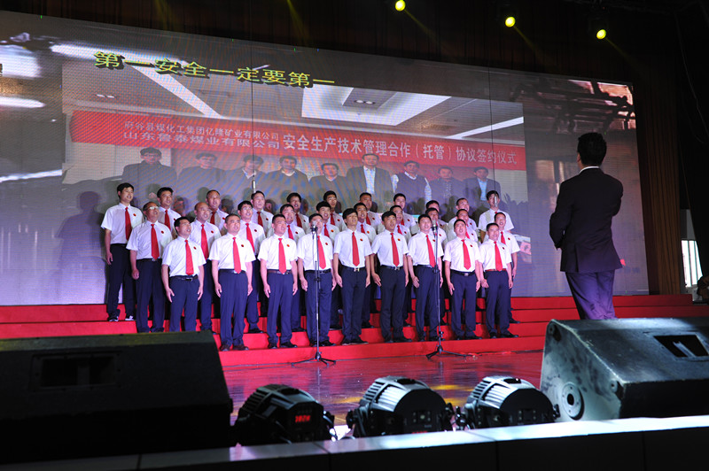 欢快的旋律,激情的演绎。演出在大鼓表演《太平之韵》中开始,金灿的舞衣加上铿锵的鼓声,敲出了气势,鼓出了干劲;小合唱《抓好两个安全、助推企业发展》,用《三大纪律八项注意》的旋律唱出了鲁泰人抓好生产安全和政治安全两个安全的决心;小品《朋友之合作共赢》,用幽默的表演诠释了集团"诚信规范、合作共赢"经营理念;歌伴舞《祖国万岁》,曼妙的舞姿,深情演唱,表达了鲁泰人对祖国的美好祝愿;乐诗朗诵《我是中国煤亮子》,深情讴歌了煤矿工人采掘光和热的煤亮子精神;音乐快板《赞我鲁泰续新篇》,八位女工歌载舞,用欢快的快板热情赞美了集团的改革发展成就;相声《幸福鲁泰人》,用相声的形式对企业岗位创效、修旧利废、节支降耗等做法进行了阐述,表现了鲁泰人共建幸福鲁泰,共享幸福生活的美好情操;乐队演奏《绿野仙踪》激情四射,展现了集团年轻人的活力;小品《牵挂》,表现了鲁泰人扎根陕北,打造托管服务品牌的决心;舞蹈《映山红》,用优美的肢体语言展现了人民对党的无限热爱;双簧《酒后的不该》,用夸张的表演提醒职工喝酒上班的严重后果;歌曲《圆梦新鲁泰》豪情满怀,达了鲁泰人圆梦新鲁泰的幸福与豪迈;小品《家》,展现了职工以企业为家,与企业同呼吸、共命运,共克时艰、共渡难关的美好感情;音乐快板《党在我心中》,唱出了对党和企业一颗炽热的心;改编歌曲《我的鲁泰我的爱》,集中表现了集团发展成果和对企业的热爱;大合唱《祖国不会忘记》、《在灿烂阳光下》歌声优美动人,舞台效果气势磅礴,将整场演出推向高潮。