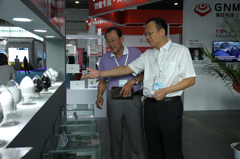 会议期间,赵宪庚、李群等领导来到鲁泰控股集团和利特纳米公司展区,李合军详细介绍了新型PVC-石墨烯高分子复合材料的研发及应用情况。鲁泰控股集团公司自4月8日与济宁特特纳米公司签订技术合作协议以来,针对集团公司化工产品PVC的特点,选择了重点开发方向,即向高分子石墨烯复合材料发展,积极研发不同用途的PVC/石墨烯复合材料,提高PVC 的附加值。目前技术上取得重大突破,PVC/石墨烯防静电膜、PVC/石墨烯导热膜等,经过测试达到了技术要求;开发的LNBR/石墨烯母料,作为母料与高分子材料混炼,可根据实际需要调节添加的量,制备高分子/石墨烯复合材料。