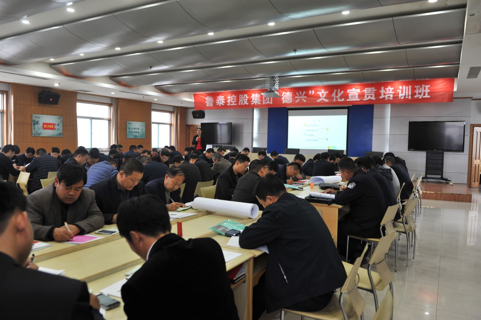11月7日,鹿洼煤矿班子成员、矿长助理、中层正职及部分中层副职80人,在矿行政办公楼四楼多功能厅参加了鲁泰控股集团"德兴"文化宣贯培训。