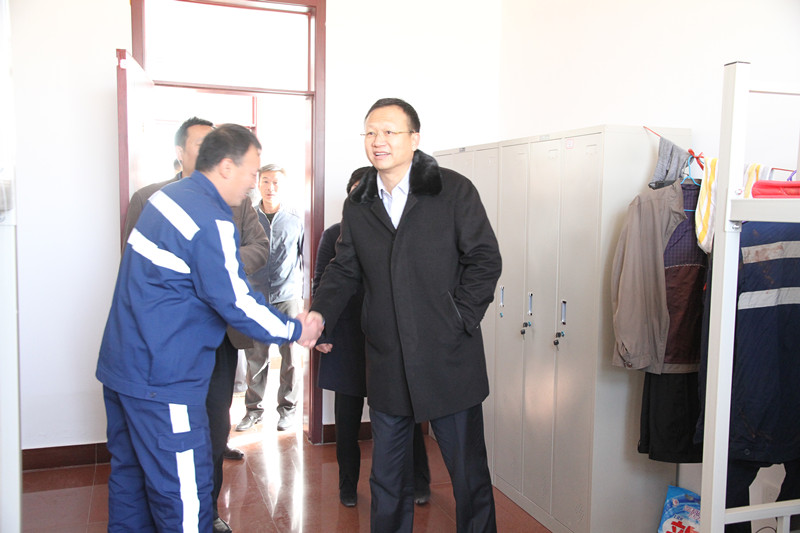 仪式结束后,李合军一行在项目部负责人刘炳法的陪同下先后检查了副井绞车房、井口,并对日常带班干部和井下跟班人员、安检员配备是否齐全等情况进行了详细了解。在随后召开的管理人员座谈会上,李合军首先对全体干部职工表示慰问,对人员进驻罗花崖煤矿以来开展的各项工作给予了充分肯定。李合军指出,抓安全归根到底就是抓管理,管理人员要认真履行职责,把管理工作做细,做到位,确保不出纰漏。李合军强调,要牢固树立安全红线意识和底线思维,没有安全就没有一切,一定要把安全工作放在一切工作的重中之重抓实、抓好、抓出成效。李合军指示宁夏鲁泰要扎实推行公司扩张经营战略,树立鲁泰公司品牌形象,积极落实集团"33320"安全管理模式,打造具有鲁泰特色的安全文化品牌。李合军要求,宁夏鲁泰能源科技公司要坚决贯彻执行党的方针路线,以宁夏鲁泰能源科技公司党总支为核心,继续深入开展"两学一做"学习教育活动,党团员要深入做好职工的思想工作,多与职工沟通交流,畅通职工的诉求渠道,对思想上产生波动的职工要正面引导,确保职工思想稳定。