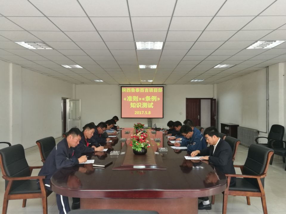 陕西鲁泰:5月6日至8日,陕西鲁泰公司百吉、亿隆、海则庙、公司机关四个党支部相继组织全体党员对《准则》和《条例》进行知识测试。考试采用前期复习要点,后期闭卷考试的方式进行,目的在于充分调动党员干部学习党内法规的热情,并与正在开展的"两学一做"专题教育紧密结合,牢记廉洁自律要求,熟悉纪律处分规定,切实增强贯彻执行党内法规的思想自觉和行动自觉,坚守党的纪律底线,绝不碰红线,形成学纪、明纪、守纪的浓厚氛围。(陕西鲁泰 苏健)
