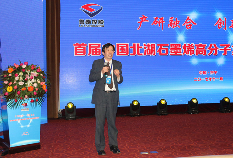 李合军在致辞中指出,鲁泰控股集团主动适应经济发展新常态,坚持创新驱动发展战略,对接前沿高新技术,与利特纳米公司合作,建设了全国首家石墨烯高分子复合材料研发中心。经过1年多的努力,在石墨烯材料制备、石墨烯复合高分子材料、石墨烯防腐涂料等方面,取得实质性进展,产品包括石墨烯原材料、石墨烯高分子复合材料、石墨烯超级电容器材料、石墨烯锂离子电池材料、石墨烯水性家居涂料、石墨烯重防腐材料等六大系列30余种。他强调,举办北湖石墨烯高分子复合材料高端论坛,就是要坚持创新驱动发展战略,以先进技术为引领,以产业发展为基础,构筑"产学研用资"全方位的交流合作平台,促进学术界、产业界和金融届的互联互通,培育转型发展新动能,推进石墨烯复合材料产业融合发展。他表示,鲁泰控股集团将深入学习贯彻党的十九大精神,以本次论坛为新的起点,在各位领导、各位专家的关心支持下,不忘初心,牢记使命,产研融合,创新发展,积极打造中国石墨烯复合材料产业基地,为推进新鲁泰建设,加快建设创新型国家作出新的更大贡献!