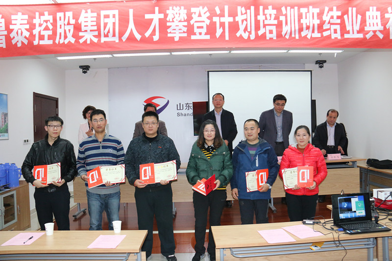 李合军在讲话中,首先向取得结业证书的学员们表示祝贺,并对本次培训的亮点进行了点评。一是更新培训理念。提出了"坚持人才强企、坚持因材施教、坚持全面发展、坚持学以致用、坚持严谨务实"的人才培训理念。这个培训理念符合鲁泰控股集团特色。 二是编写了培训大纲。编写了切实可行的培训大纲,对培训各个方面进行详尽规划,培训大纲的编制在前期也经过了大家的讨论,进行了充分的研究。在师资方面,选配了既有理论高度又有丰富实战经验的顶级讲师,保证了培训的师资力量和培训质量。在授课方面,将课程设计成专题模块,包括战略推进与执行、宏观经济形势、领导力提升、执行力与绩效管理、人力资源与团队建设、财务管理、创新与风险管理、互联网思维与专业呈现等,并开发了配套的行动学习训练、团队拓展活动等,提升了培训的针对性和实战性。三是培训形式和内容有创新。本期人才培训除课堂授课外,还采取行动式、研究式、案例式教学,将多种培训形式贯穿于培训实施全程,注重理论与实践相结合,注重培训的实效性。培训内容的针对性更强了,在不同的培训环节设计了许多丰富多彩的培训内容,组织了野外拓展、攀登泰山等,培养学员的团队精神、合作精神及勇敢、乐观等品质。
