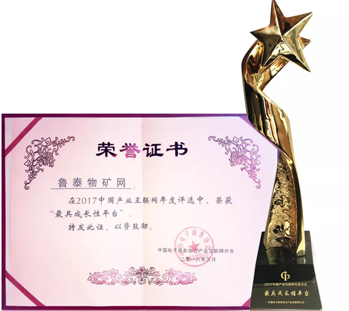 本次论坛由国家工信部信息中心、中国电子商务协会指导;中国电子商务协会产业互联网分会主办;重庆市九龙坡区人民政府承办。通过网络投票、专家推荐、电话调查、网络调查等评选程序,鲁泰物矿网在全国各地400余家平台、人物及投资机构参与的评选中脱颖而出,被评为"最具成长性平台"。