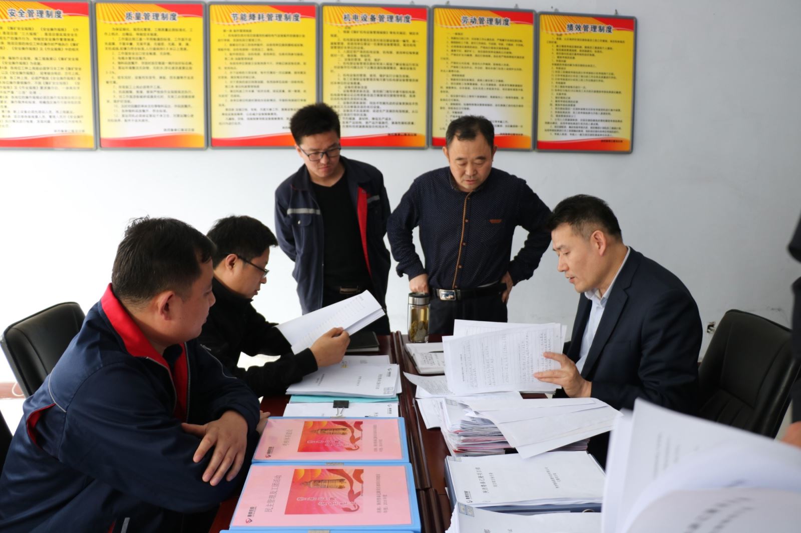 安全检查组对陕西鲁泰公司百吉、亿隆、海则庙三项目部托管范围内的安全生产情况、"冬季四防""冬春百日"活动开展情况和项目部建设情况进行了细致检查。区队建设检查组对各项目部区队建设进展情况、区队体系建设、区队制度建立等具体内容进行了详细检查,并提出了意见建议及要求。