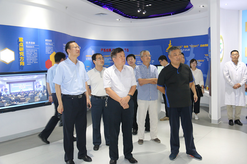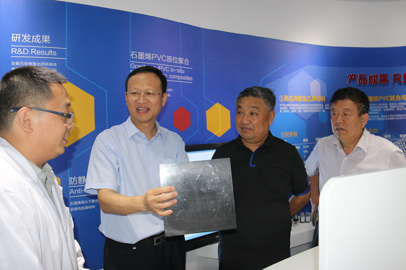 王国法一行参观了集团公司新旧动能转换"四化"宣传栏、集团展厅和石墨烯高分子复合材料研发中心实验室。看到集团公司拥有自主知识产权的系列产品,王国法不时驻足,饶有兴致地了解产品的性能和市场前景。