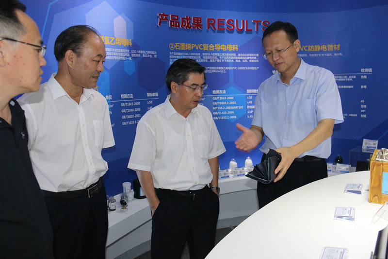 到达集团后,陈延庆一行首先到集团展室、石墨烯高分子新材料研发中心和电商平台进行了实地考察,听取了李合军关于集团公司近年来改革发展情况汇报。陈延庆对集团公司围绕"一体两翼、循环发展"发展战略,坚持创新驱动,聚焦聚力以"四新"促"四化",加快煤炭、盐化工传统产业转型升级,推动石墨烯复合材料、电商供应链新兴产业快速发展的做法给予充分肯定,对集团公司积极对接资本市场,实施市场化债转股,加快推进股改上市工作予以充分认可。