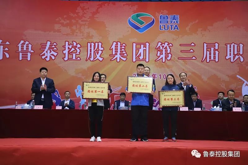 下午14:30,举行了运动会闭幕式,袁歆主持。经过激烈角逐,太平煤矿代表队获得团体总分一名,鹿洼煤矿代表队和鲁泰化学代表队并列团体总分第二名,集团公司领导为获奖团体和选手颁发了奖牌或奖杯。