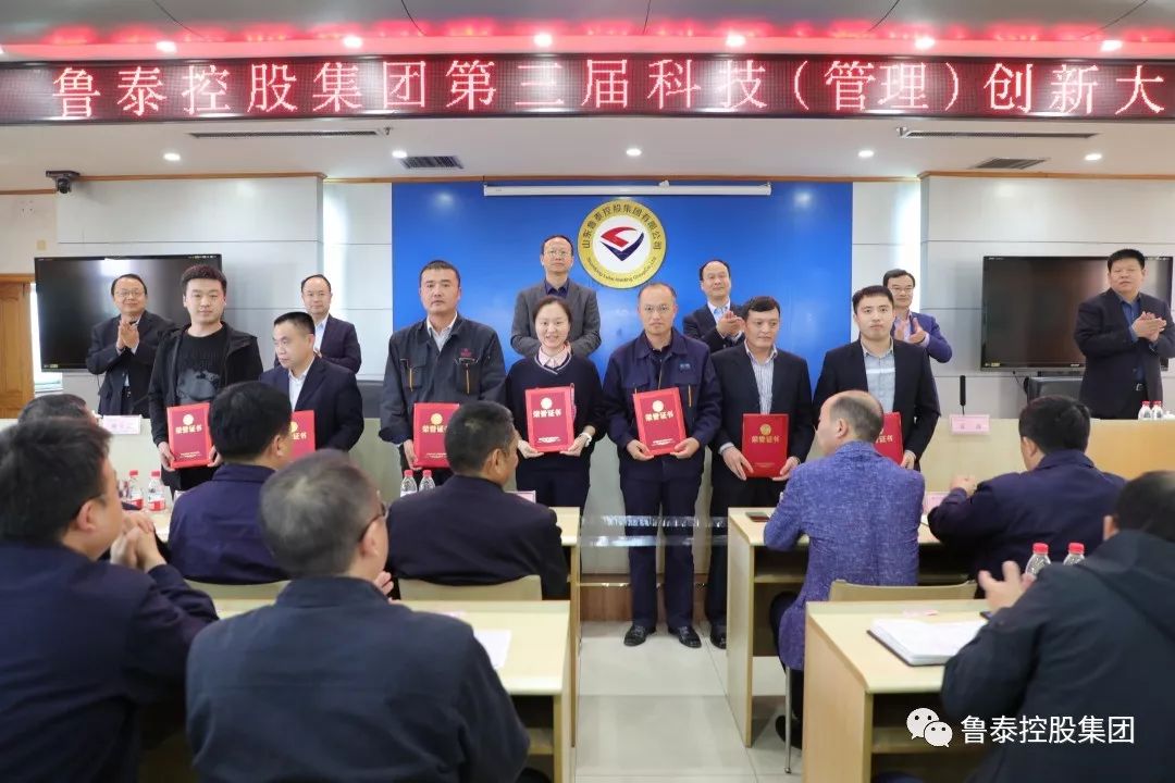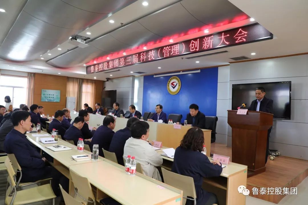 李合军在讲话中回顾了近两年来集团公司创新事业发展取得的显著成效。一是完善科技创新平台,形成具有鲁泰特色的科技管理与创新体系。经过近两年的努力,集团公司科技管理工作更加规范,科技创新体系更加完善,对外科技合作更加有效,为推进集团公司科技进步与创新奠定了坚实基础。集团目前合计拥有国家专利155项:其中国家发明专利9项、实用新型专利142项、软件著作权4项。二是实施科技创新,实现了现有产业优化升级和经济效益的稳步提升。集团公司积极推进科技创新,通过与大专院校及科研机构联合课题攻关、小改小革和全员提合理化建议等活动,提高化工新材料研发水平和能源可持续发展水平。三是持续丰富管理内涵,发展质效实现新提升。今年组织33项成果申报第三十三届山东省企业管理现代化创新成果、38项成果申报年度山东省煤炭行业协会企业管理现代化创新成果、74项成果参加集团公司第三届科技和管理创新大会,评审均创历史新高。集团公司被省国资委确定为省国有企业现代企业制度建设示范企业,与山东能源集团、兖矿集团一起被省能源局、省煤炭行业协会确定为全省“双创”工作示范企业。四是深化人才强企,“鲁泰工匠”队伍不断壮大。13名职工荣获“山东省技术能手”“济宁市有突出贡献的中青年专家”“济宁市首席技师”“济宁市有突出贡献中青年技师” “济宁市技能拔尖人才”“济宁市急需专业中青年技师”等荣誉称号。截至目前,集团公司专业技术、技能人员4630人,占职工总数的76%。五是不忘初心牢记使命,打造国企党建“鲁泰模式”。总结实施了“四全四化”智慧党建工作体系,明确了党建工作的基本遵循,推动党建工作与中心工作深度融合、互促共进,打造了国企党建的“鲁泰模式”。率先建成党校和党性教育基地、廉政教育基地、传统文化教育基地、党性体检中心,形成“一校三基地一中心”党建教育培训新阵地。与人民网合作,建设“四全四化”智慧党建调度指挥中心,实现了“党务工作在线落实、党内活动实时监督、党员动态随时掌握、党风廉政线上举报、舆情信息实时监控”。