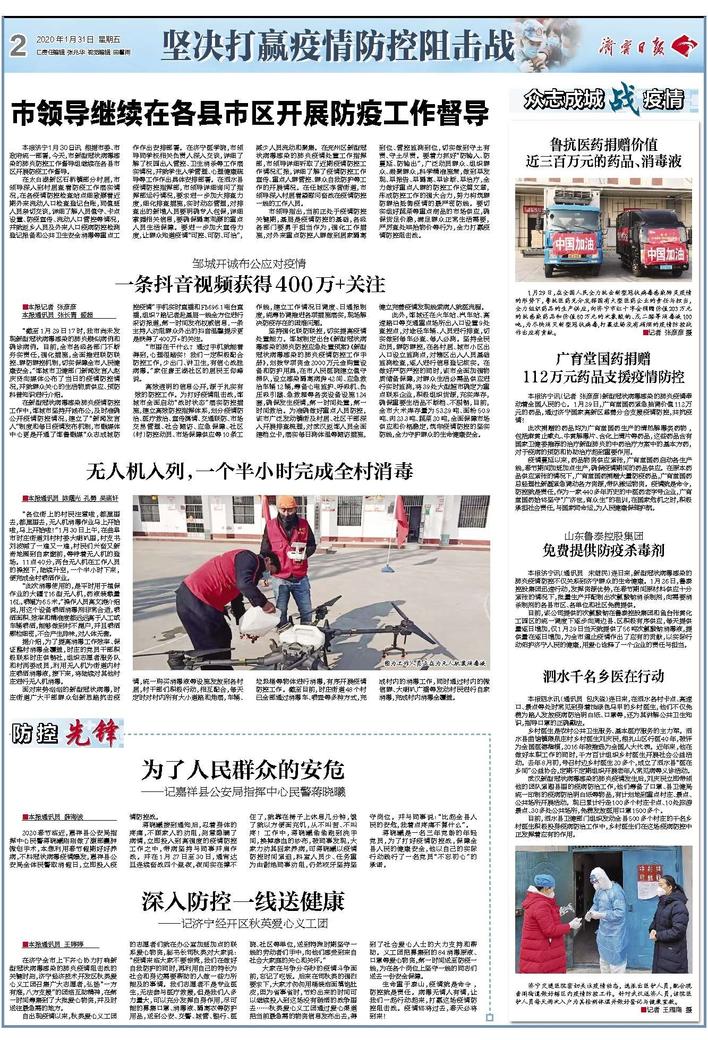 本报济宁讯(通讯员 宋继民)连日来,新型冠状病毒感染的肺炎疫情防控不仅关系到济宁群众的生命健康。1月26日,鲁泰控股集团迅速行动,发挥资源优势,在春节期间原材料供应十分紧张的情况下,批量生产并配制出次氯酸钠消杀制剂,向需要消杀制剂的各县市区、各单位和社区免费提供。