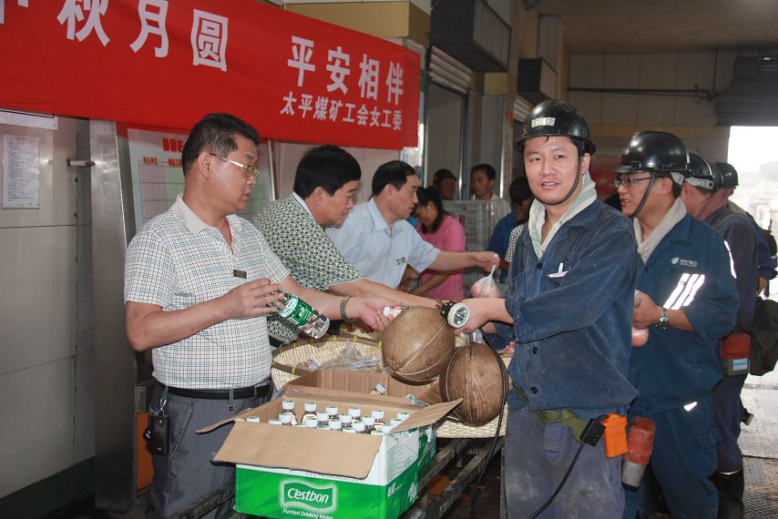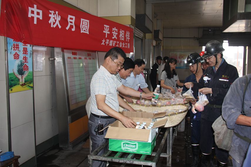 开展党的群众路线教育实践活动以来,太平煤矿党政工领导一手抓好安全生产,一手抓好企业职工文化建设与福利生活。新春佳节为坚守岗位搞好安全生产的广大职工送火腿肠、营养快线、端午节送粽子、中秋佳节送月饼,平时送安全水果、安全鞋垫,形成了自己独特的节日企业安全文化氛围,使在岗职工不仅坚持岗位搞好安全生产,同时还感受到企业和谐大家庭的温暖。
